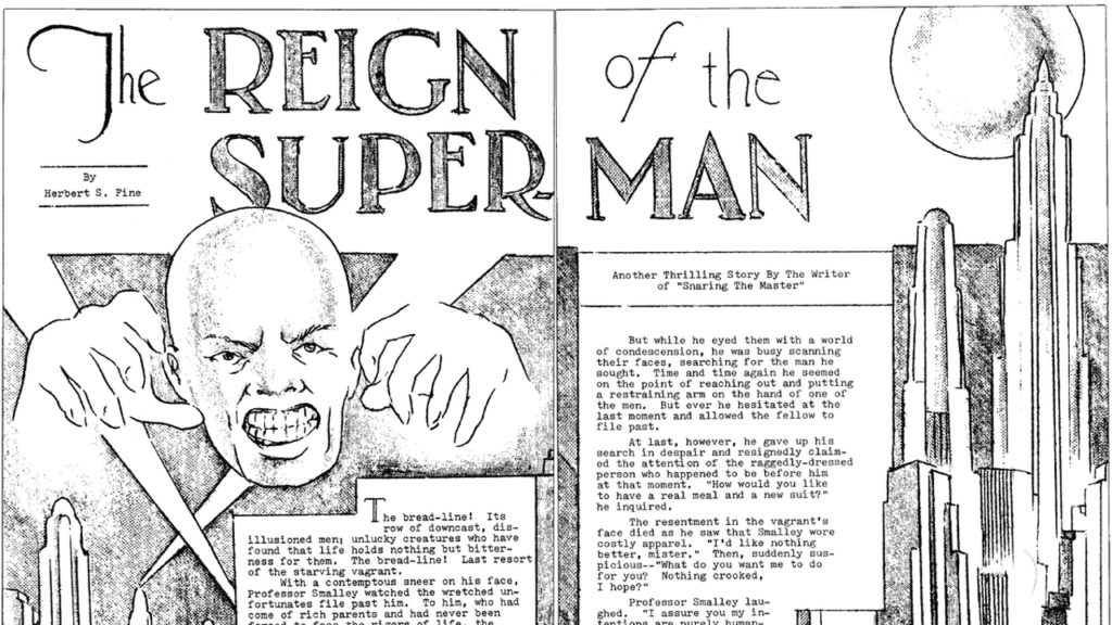 It seems ridiculous that Superman, Lex Luthor, and the relatively obscure Ultra-Humanite may have all derived from the same character and the same short story. Well, don’t forget: the world of comics is the home of characters like Matter-Eater Lad where a talking planet and a flying whale can be enlisted as celestial guardians (I swear to god, those are actual members of the Green Lantern Corps.) Stranger things have happened. Despite his official debut in 1938, Superman technically first appeared in a notably different form twice in the same year, specifically 1933. The first was a short story that depicted him as a spiteful bald-headed scientist granting superhuman powers to a pathetic homeless man, who then must be stopped before he can potentially conquer the world. The latter depicted him as a superhero that more closely resembled the Clark Kent we eventually got, but this would never be published, and it will likely never see the light of day.