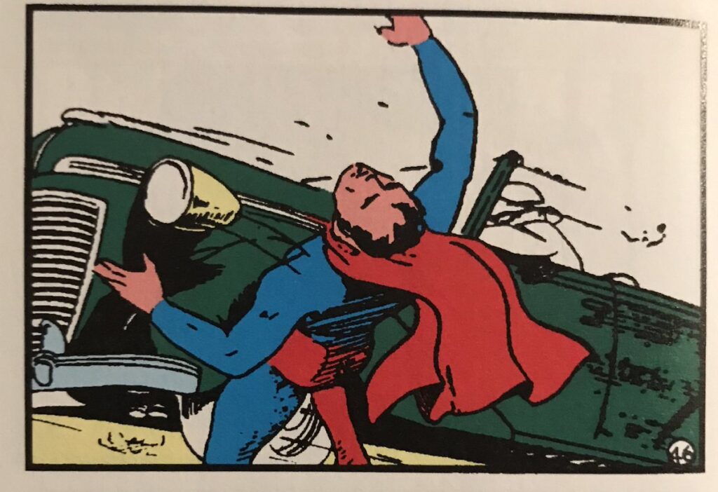 It was worked on by Jerry Siegel and Joe Shuster, the same creators of his official ’38 debut, and featured Superman as a shirtless, hairy-chested strongman, but no publishing house would accept the final black-and-white revision. While this can’t necessarily be verified, legend has it that the only known copy of this revision was thrown in a hearth fire during a fit of rage, thus possibly wiping it off the face of the Earth entirely. I guess the funniest detail in this story is that, while 1933 Superman was easily defeated by fire, 1938 Superman found his one true weakness in… you guessed it…