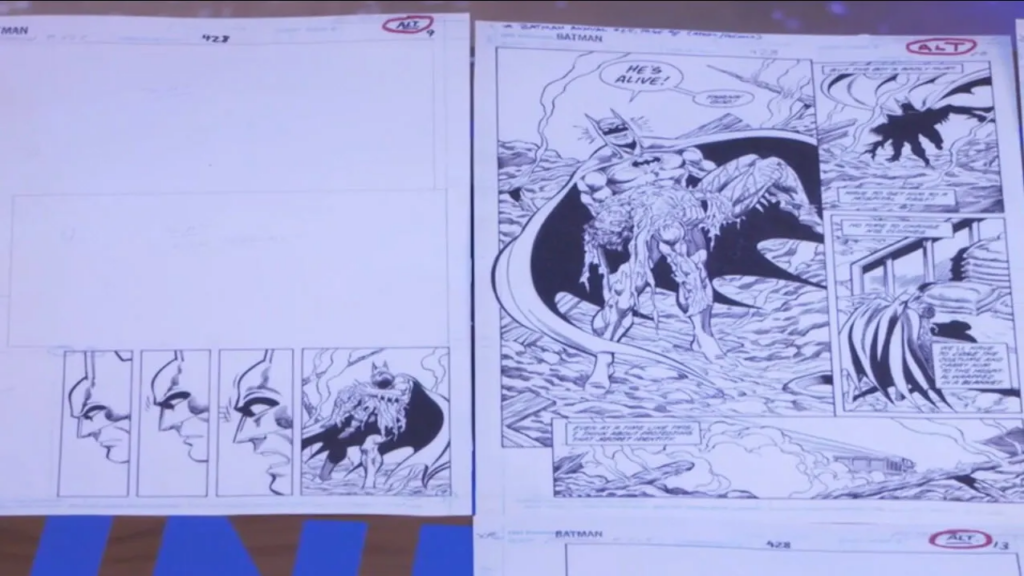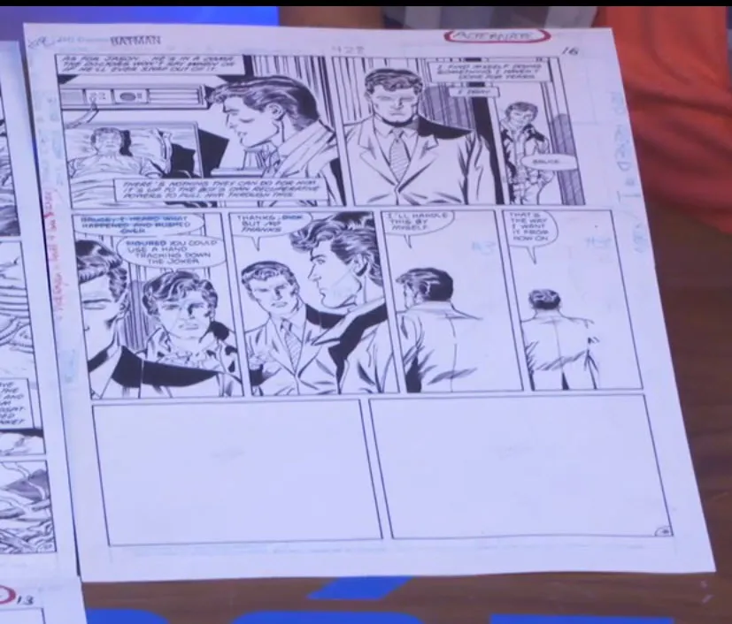 During the fan event, the unfinished ending would be shown briefly on video. Batman is relieved to notice Jason’s breathing and tosses him into a nearby cargo truck to be driven off. He has one last exchange with Dick Grayson (Nightwing) while the young rebel recovers in the hospital, claiming that he’d prefer to continue his career and face Joker alone from that point on. Granted, this can only be seen throughout the lone bottom row of one page, another completed page, and one last partially completed page. Only the penciling and inking are complete, as none of the pages have been colored.