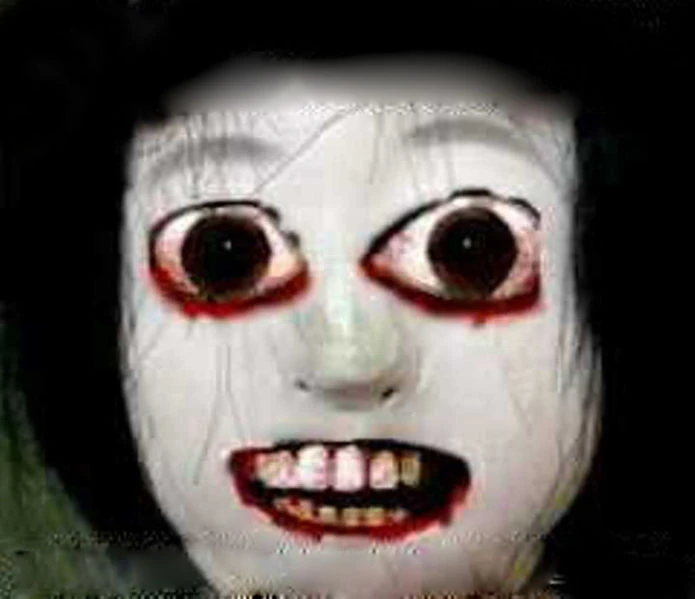 This old Bob Hope-looking weirdo used to be a common screamer image, but the only real creepypasta that it was directly associated with was called Gurgles and Bugman, a user’s account of a disturbing, snuff-like children’s show starring two clown hosts. It’s also been used by a now-banned Facebook user named Ahenobarbus Henocied, who would send graphic content and mysterious coordinates to children. Even though some people are looking even deeper, it seems to be a simple photoshop of a novelty Japanese doll.