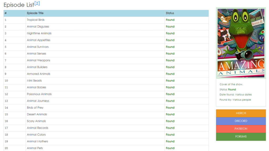 Yeah… after that dreary game and its equally dreary fate, why not liven things up again by talking about a wholesome children’s wildlife series? Now, throughout elementary school, I was fascinated by wildlife of all kinds (marine life was my jam, however), having searched for various animals in various ecosystems with my dad in the books I read. He even came up with an… interesting game called “Eat, Hug, Marry”, where we’d both have to pick out at least one animal from each page of The Great Dinosaur Search and The Great Animal Search that we’d… well… do any of the above with. Hence how “that one looks chewy” practically became a meme among my immediate family. Anywho, you can be sure that I read plenty of encyclopedias by Dorling Kindersley (DK) about the subject, and despite the many VHS releases of their educational video series, Amazing Animals, most of the show had been lost since I was very little.