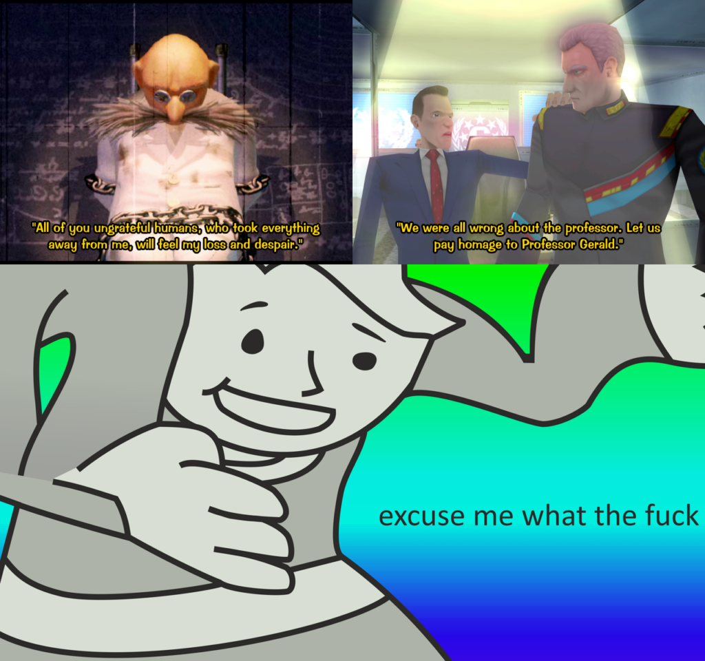 Though, then again, that’s not to say the last story goes on to flip off Gerald entirely, as an exchange between Eggman and Tails during the end credits shows.