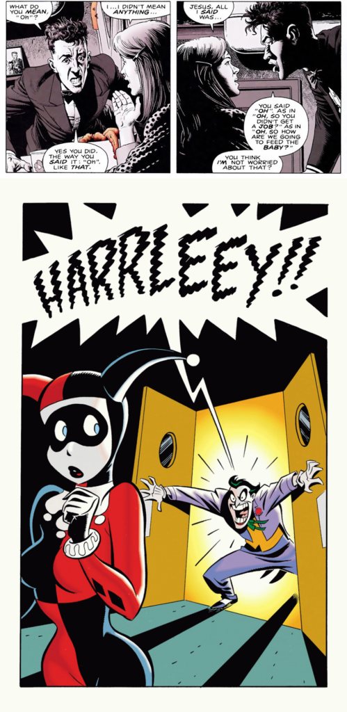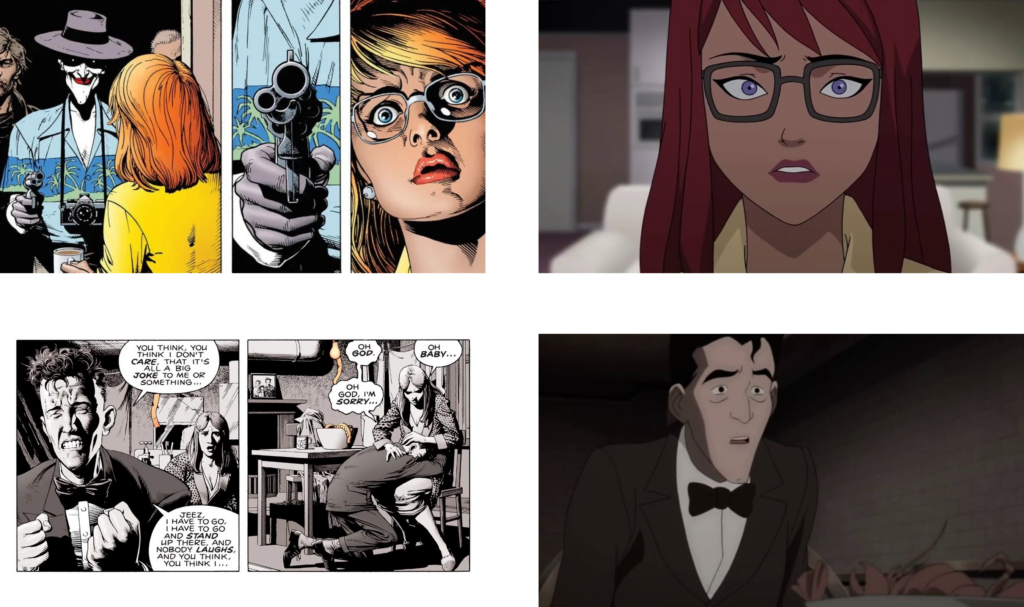 For those confused about the “mentally unstable” aspect of The Killing Joke, Joker’s mental illness isn’t explicit like it is in Joker, but his nervous, uneven dialogue and tendency to lash out at his wife over very little certainly implies it to some extent.