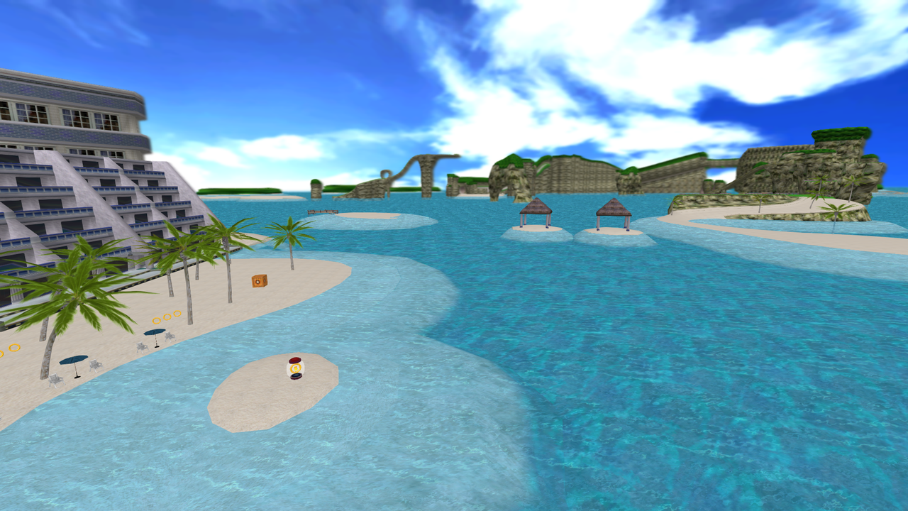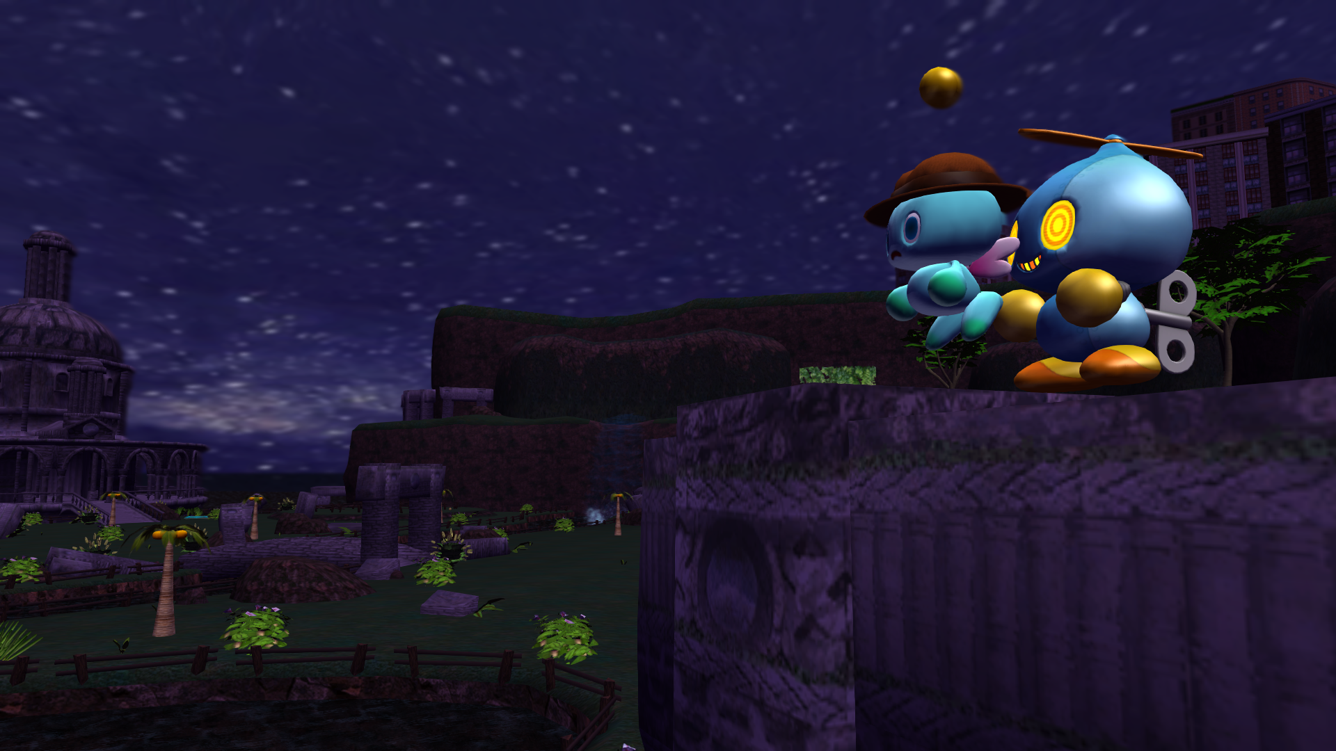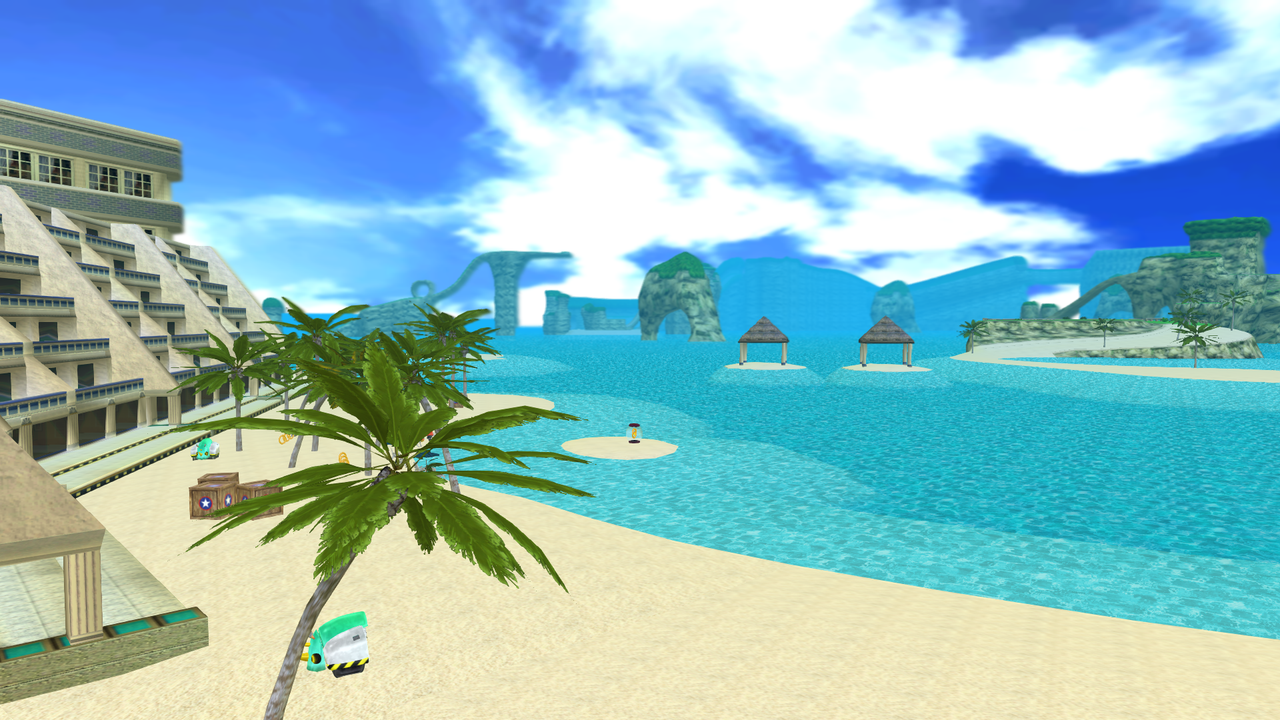 The battle mode version of Dry Lagoon has been replicated, dusk fog included. Certain textures were borrowed from Hyperballic’s Cinematic Textures mod for SA2.
